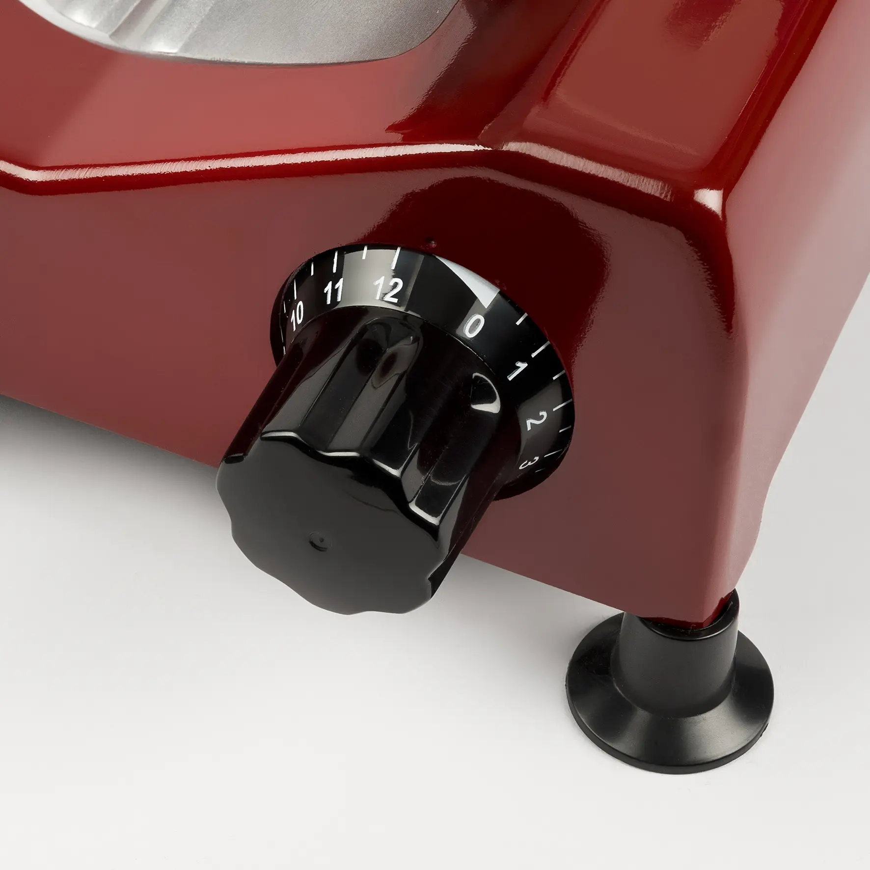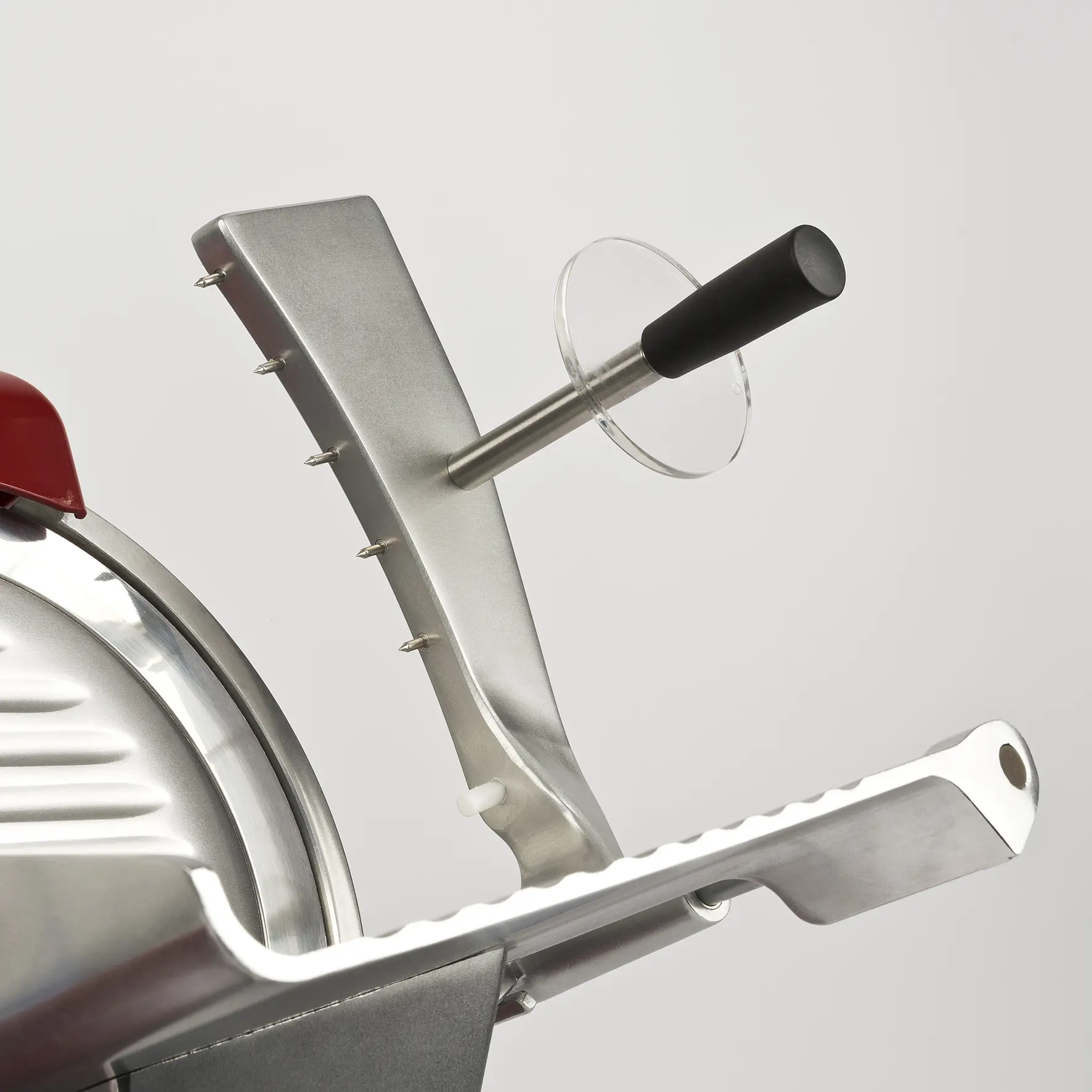 Con il regolatore di spessore da 0 a 12 mm, puoi ottenere fette sottilissime per prosciutto crudo e carpacci oppure tagli più spessi per carni e preparazioni rustiche.